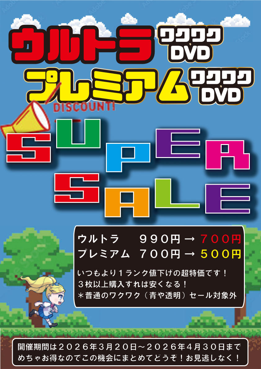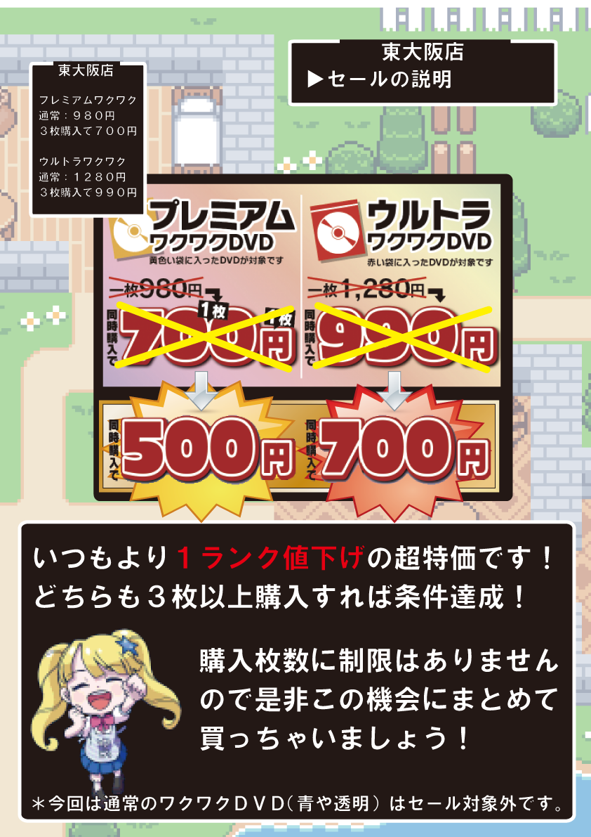 - ・プレミアムワクワクDVD 700円 → 500円